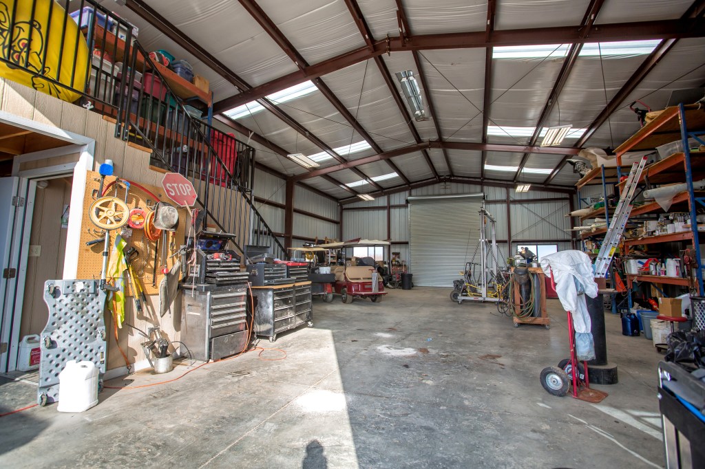 The main shop on the property was added in 2016. The metal building boasts 2400 open square feet with roll-up doors on each end and overhead storage. The space is enough for nearly anything you want to park inside-tractors, farming equipment, motorhome, ski boat-you name it, it’ll fit!
